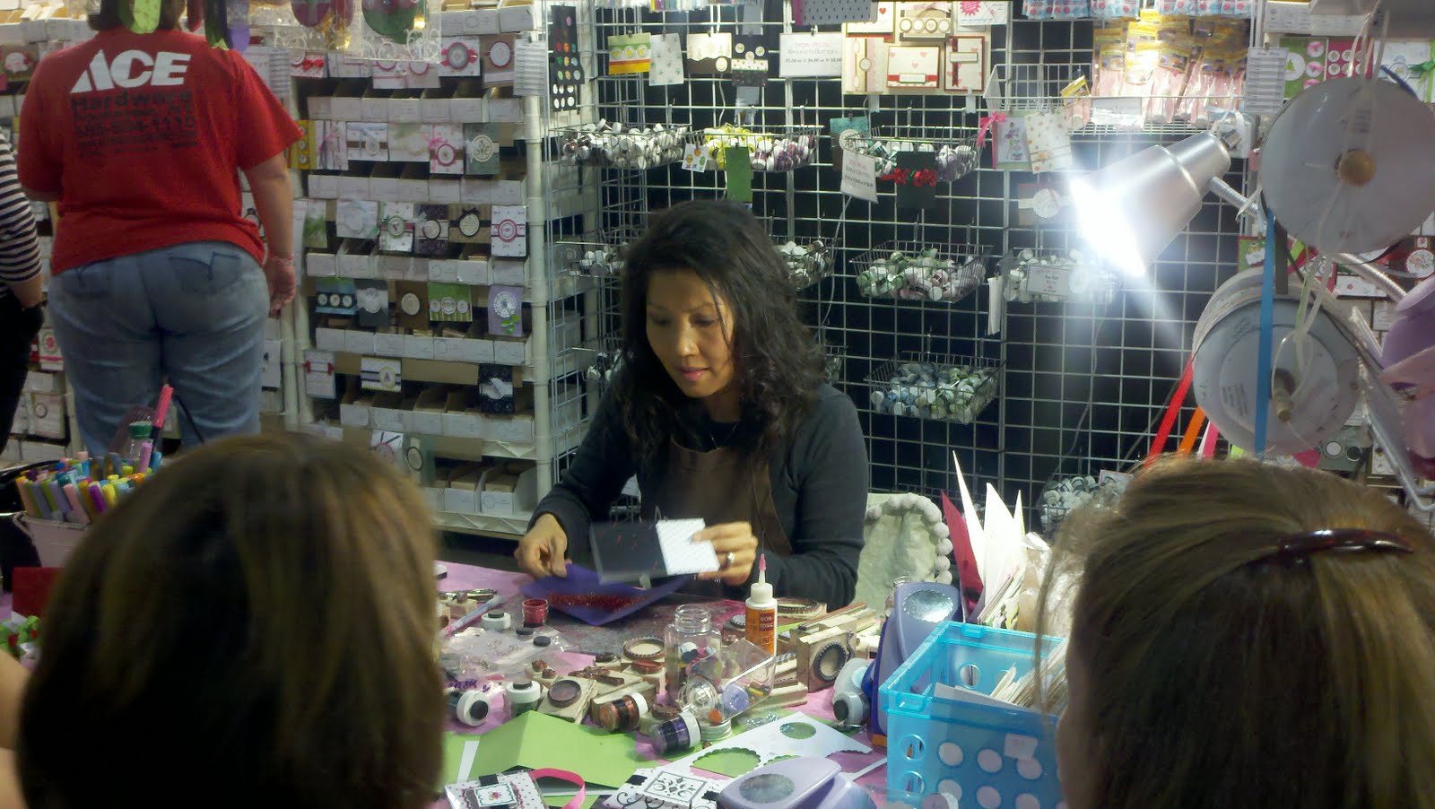 I enjoyed time with the folks from Luni, Stamp on It, and Magenta who are becoming like friends from working shows together. New to the event was Avocado stamps and a dollar store booth which had Bazzill paper and My Mind's Eye for 25 cents each and stickers and stamp sets for one dollar.